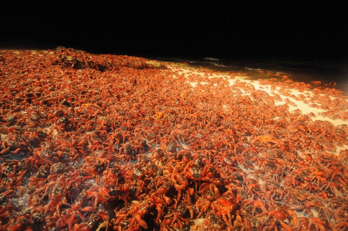 Wyspa Bożego Narodzenia, terytorium Australii na Oceanie Indyjskim, jest co roku, między październikiem a grudniem, świadkiem jednego z najbardziej imponujących spektakli natury na naszej planecie: migracji od 50 do 100 milionów czerwonych krabów (Gecarcoidea natalis). Wychodząc ze swoich nor rozsianych po tropikalnym lesie, skorupiaki przemierzają drogi, ogrody, mosty i obszary miejskie, aż docierają do wybrzeża, gdzie składają jaja w morzu.