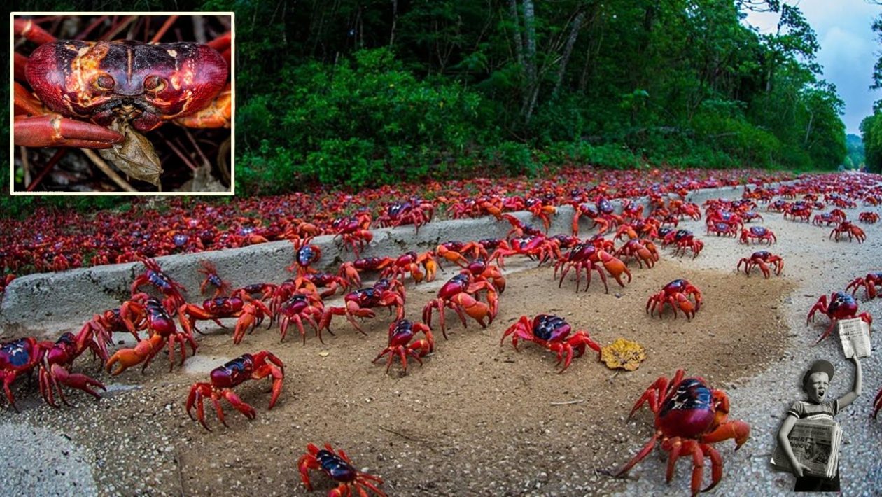 Coroczne zjawisko na Wyspie Bożego Narodzenia w Australii polega na tym, że nawet 100 milionów czerwonych krabów opuszcza las i kieruje się w stronę oceanu, aby złożyć jaja, co wymaga szeroko zakrojonej ochrony logistycznej i kontroli ruchu.